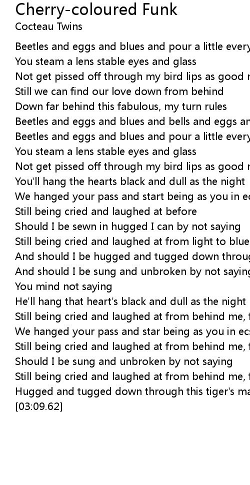 Web Cocteau Twins Lyrics Cherry-Coloured Funk Beetles and eggs and blues and pour a little everything else You steam a lens stable eyes and glass Not get pissed off through my.